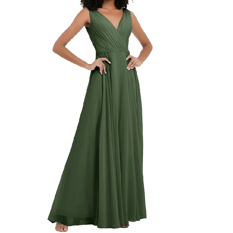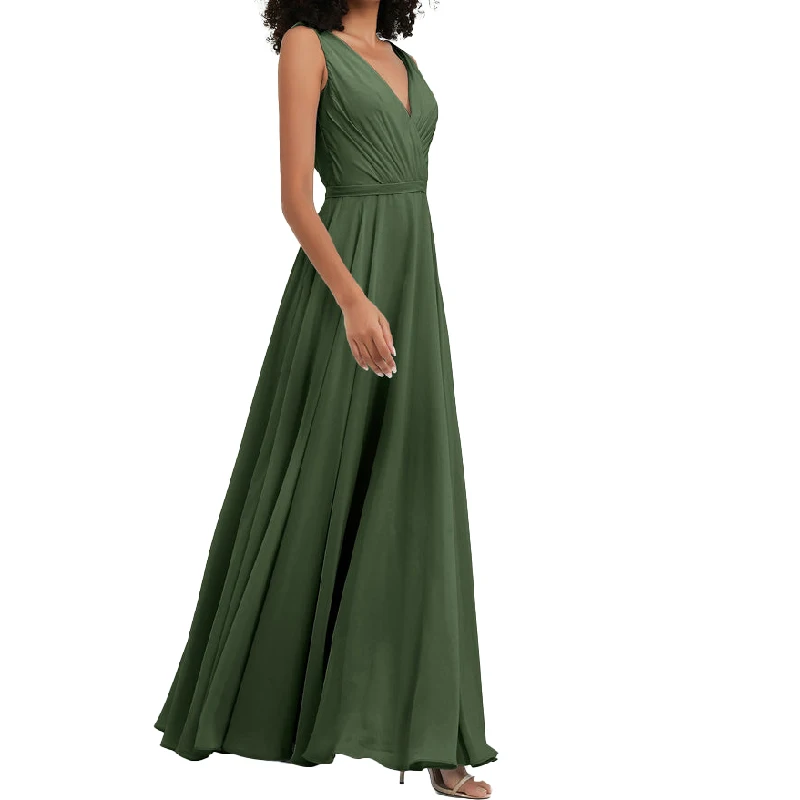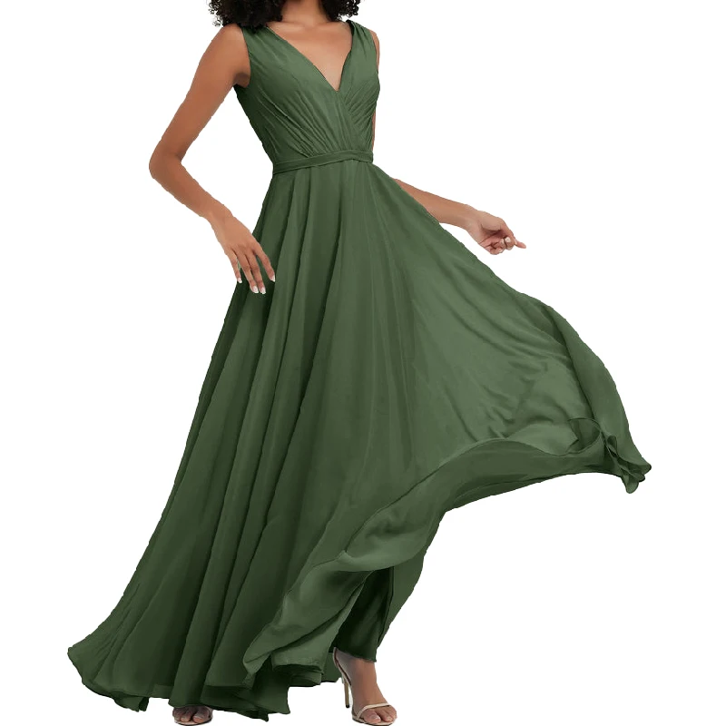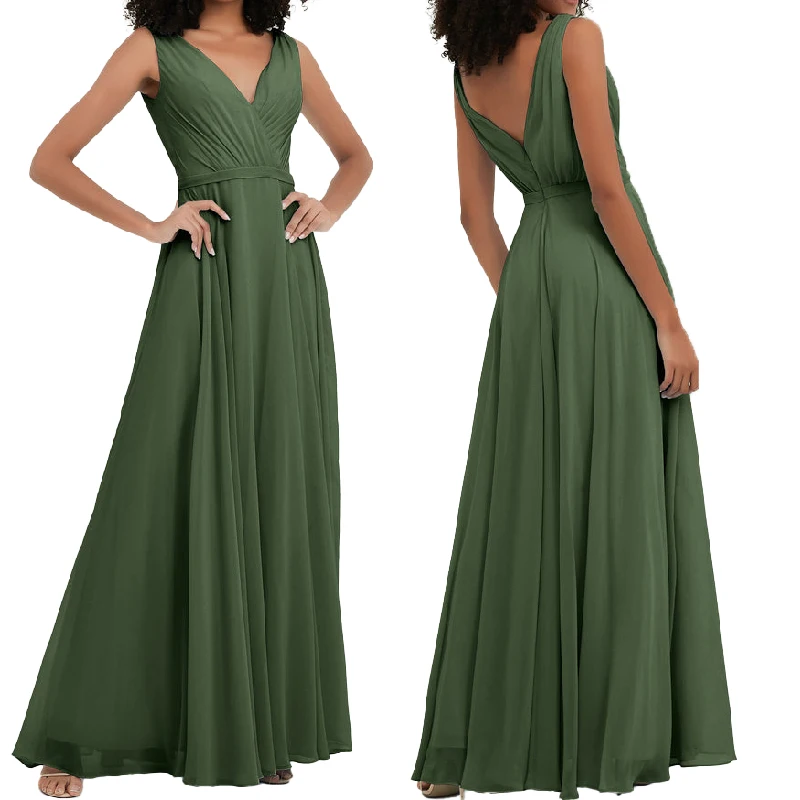 Elegant Classic Sleeveless V-neck Front Back Chiffon Maxi Bridesmaid Dresses